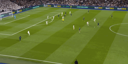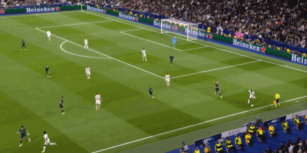 这个时候你就会发现,尼科独木难支,谢尔基也帮不上忙,所以贝林厄姆将球交给罗德里戈,第一球就这么到来了: