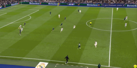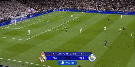 当然了,皇马此役没有找到多少打尼科身侧空间的机会,因为谢尔基内收的幅度很大,但也因此,皇马获得了打击曼城弱侧空间的机会,借助这一点完成了多次提速和推进: